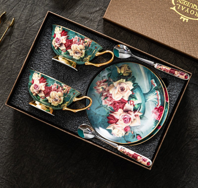 Large Rose Royal Ceramic Cups, Afternoon Bone China Porcelain Tea Cup Set, Unique Tea Cups and Saucers in Gift Box, Elegant Flower Ceramic Coffee Cups-Art Painting Canvas
