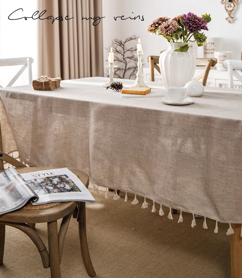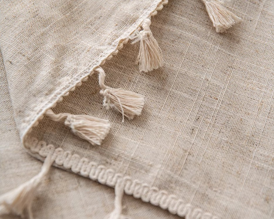 This unique natural flax table cloth is suitable for dining table, tea table, piano cover, bedstand, etc.