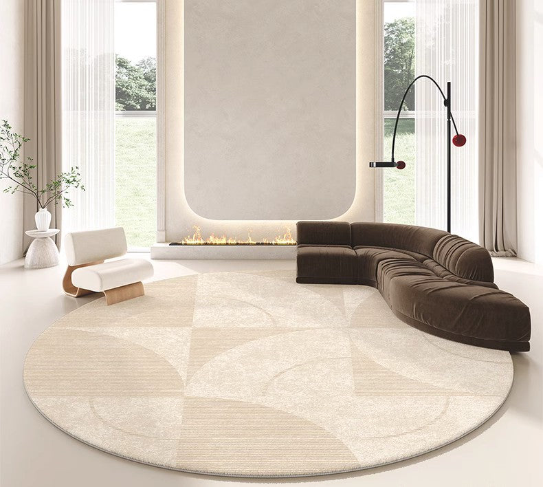 Abstract Geometric Round Rugs under Sofa, Contemporary Modern Rugs for Bedroom, Cream Color Rugs under Coffee Table, Dining Room Modern Rugs