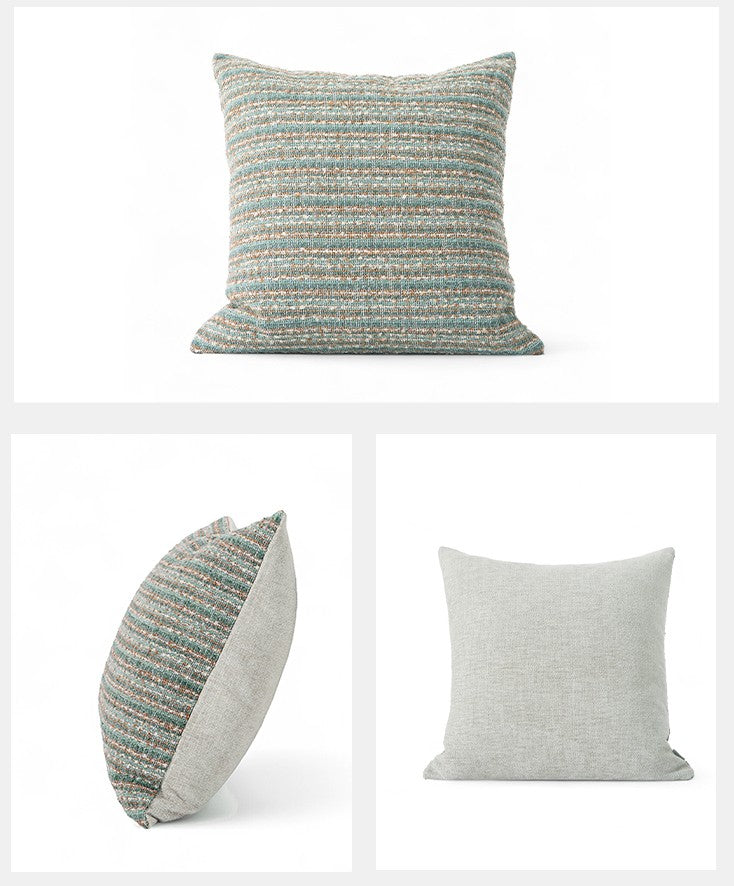 All pillow covers are sewn professionally, over-locked with finished edges to prevent fraying and has invisible zipper enclosures. This provides long lasting, durable covers that will stay straight and beautiful over time, which makes for a clean professional look.