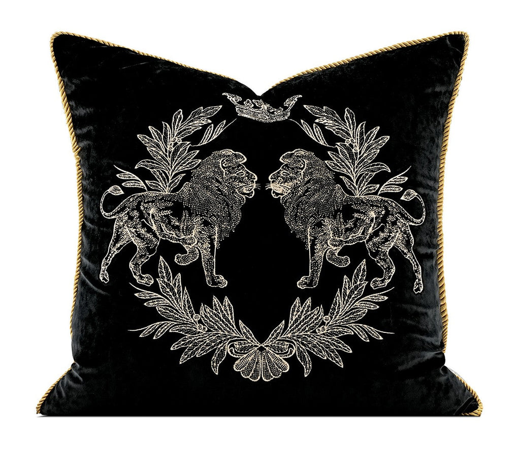 Modern Pillows for Couch, Embroidery Lion Decorative Pillow Covers, Decorative Throw Pillows for Living Room, Large Modern Sofa Pillows