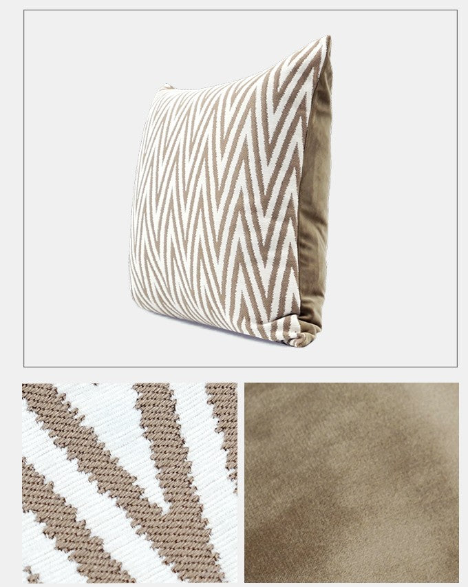 All pillow covers are sewn professionally, over-locked with finished edges to prevent fraying and has invisible zipper enclosures. This provides long lasting, durable covers that will stay straight and beautiful over time, which makes for a clean professional look.