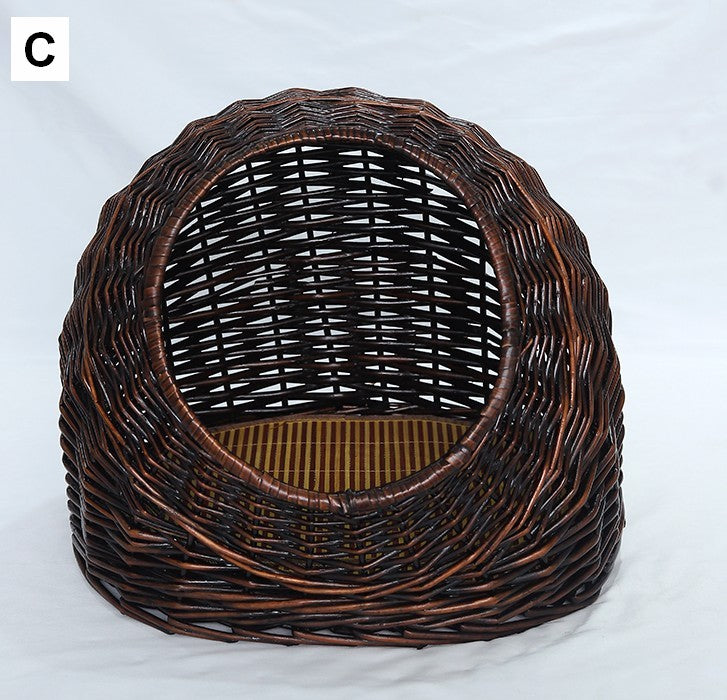 Hand woven Rattan Cat Bed, Natural Wicker Cat House Basket with Washable Cushion for Indoor Cats and Dogs