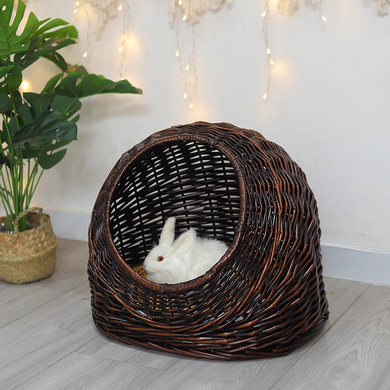 Wicker Cat House Basket with Washable Cushion for Indoor Cats and Dogs, Rattan Cat Bed