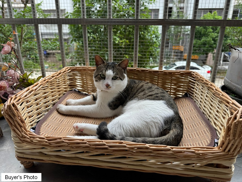 Hand Woven Rattan Cat Beds, Extra Large Natural Wicker Dog Bed with Washable Cushion for Indoor Cats and Dogs