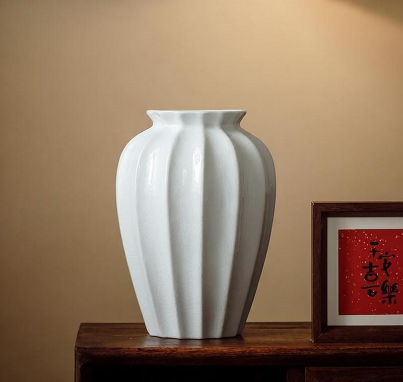 This vase's surface is decorated with an ice crack pattern, evoking a sense of timeless elegance.