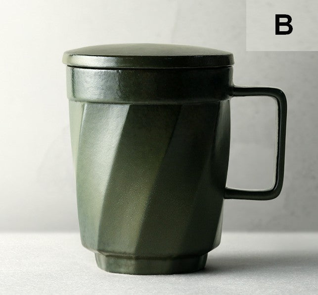Large Modern Handmade Pottery Coffee Cup, Creative Brown Green Blue Black Ceramic Coffee Mugs, Large Unique Tea Cup, Large Capacity Coffee Mug with Cover