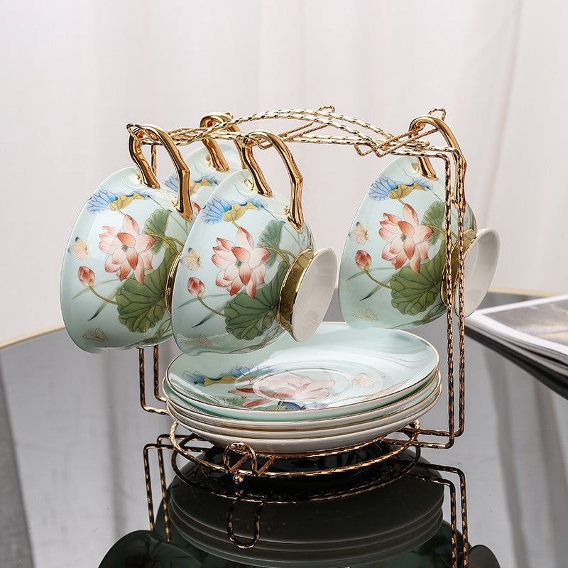 Lotus Flower Bone China Porcelain Tea Cup Set, Unique British Tea Cup and Saucer in Gift Box, Elegant British Ceramic Coffee Cups-Art Painting Canvas