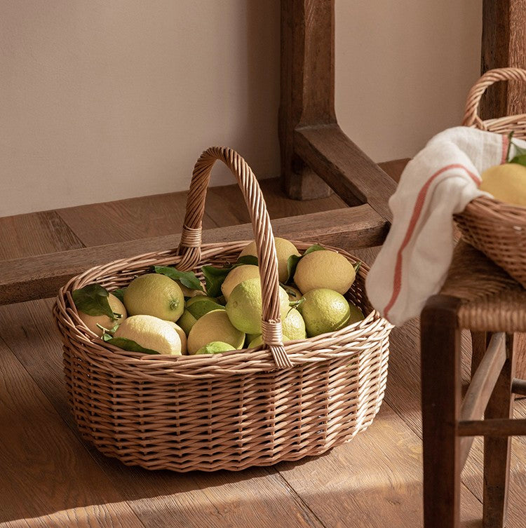 Lovely Willow Weaving Baskets for Vegetable, Large Picnic Food Basket with Handle, Natural Hand-woven Wicker Storage Basket, Natural Fruit Basket, Kitchen Storage Baskets