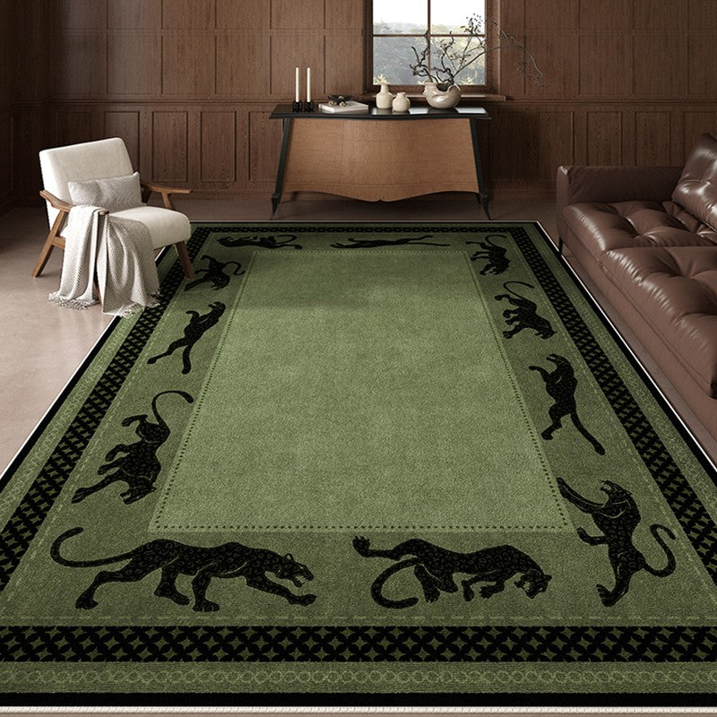 Modern Living Room Rug Ideas, Mid Century Cheetah Green Modern Rugs for Dining Room, Modern Rug Ideas for Bedroom