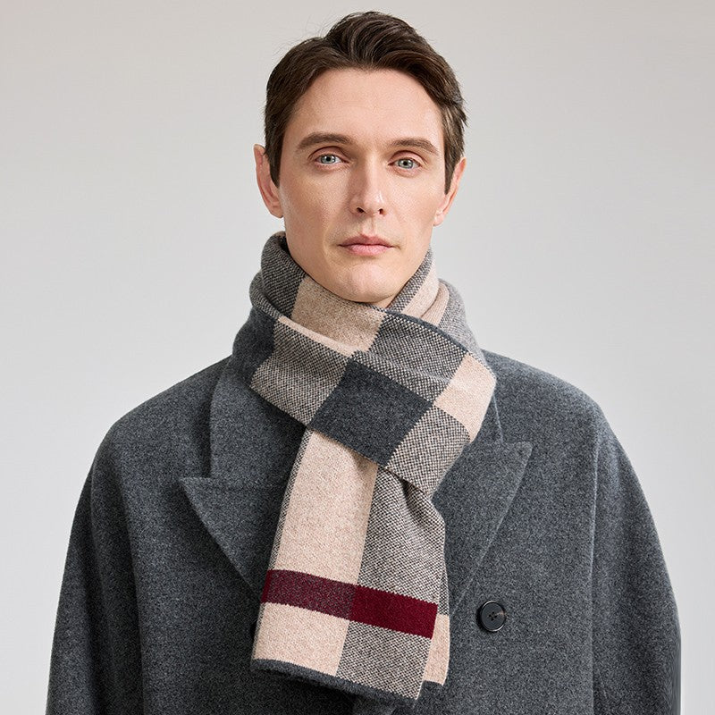 The perfect gift that combines thoughtful design with everyday utility. This wool scarf, in understated masculine tones, is a token of care for holidays or milestones. It's an invitation to experience lasting warmth and understated elegance, season after season.