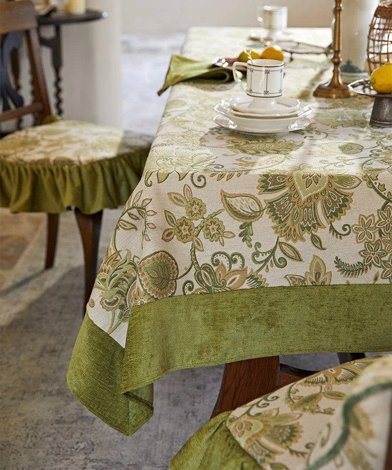 Green Flower Pattern Table Cover for Kitchen, Outdoor Picnic Tablecloth, Rectangular Tablecloth for Round Table, Extra Large Modern Tablecloth Ideas for Dining Room Table