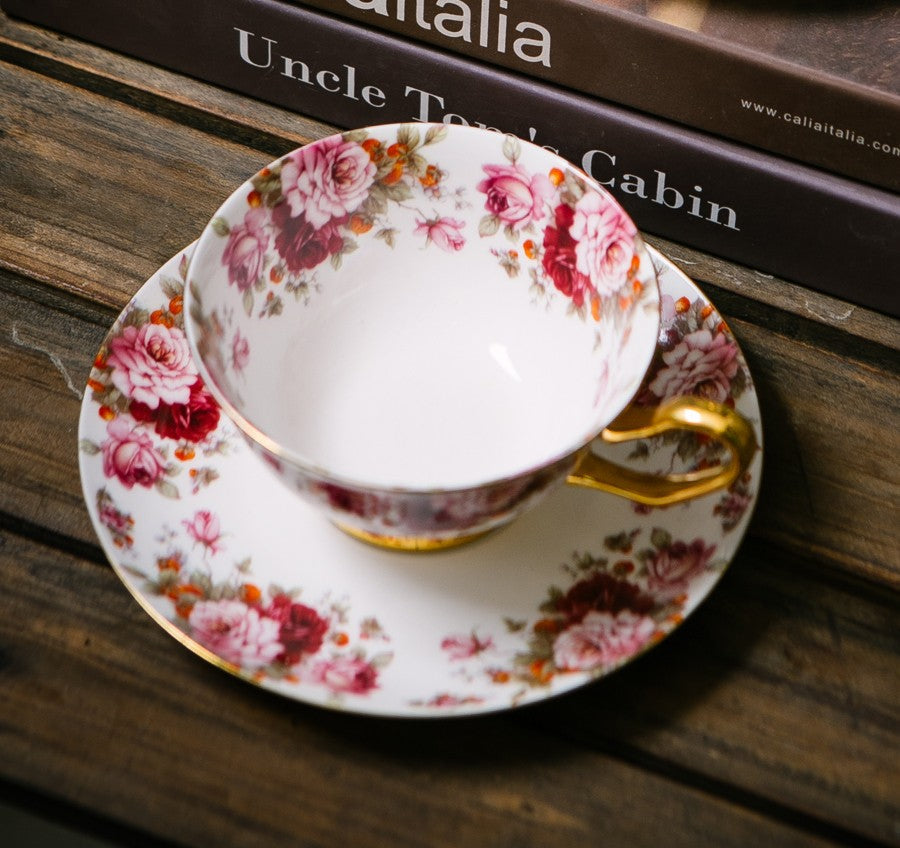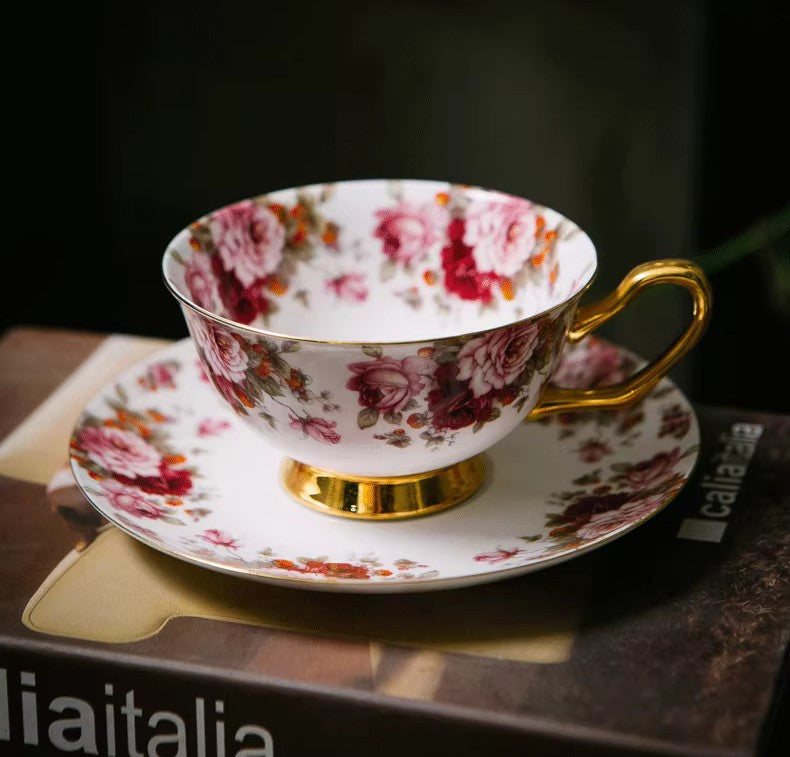 Unique Royal Coffee Cup and Saucer, Elegant Flower Ceramic Cups, Creative Bone China Porcelain Tea Cup Set, Beautiful British Tea Cups-Art Painting Canvas