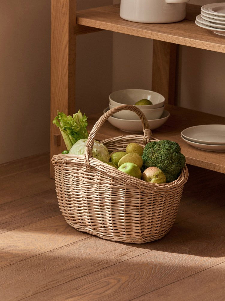 Wicker Storage Basket, Large Picnic Food Basket with Handle, Lovely Willow Weaving Baskets for Vegetable, Natural Fruit Basket, Natural Hand-woven Kitchen Storage Baskets
